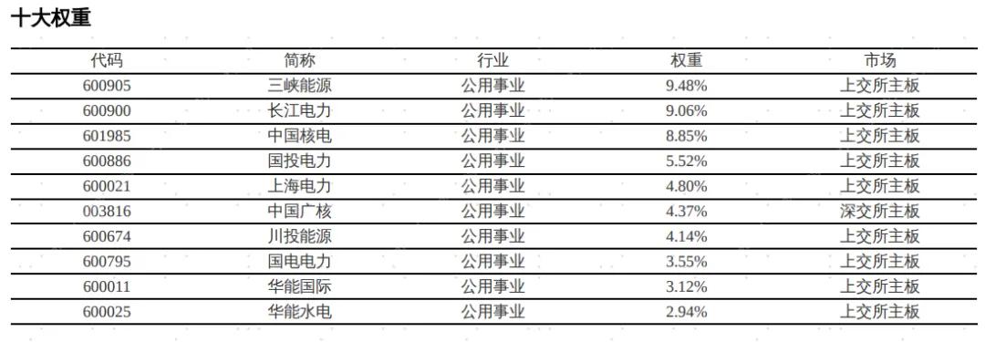 首先,指數(shù)“綠色電力”純度高,權(quán)重股聚焦綠色電力龍頭公司,“綠色”屬性明顯。根據(jù)iFinD,截至2025年12月17日,國證綠色電力指數(shù)行業(yè)分布聚焦清潔能源電力運(yùn)營商,其中公用事業(yè)行業(yè)占比為93.58%,工業(yè)3.08%、信息技術(shù)1.21%、其他2.13%。指數(shù)前十大成分股合計(jì)占比55.83%,且多集中在風(fēng)電、光伏、水電、核電等龍頭企業(yè)。